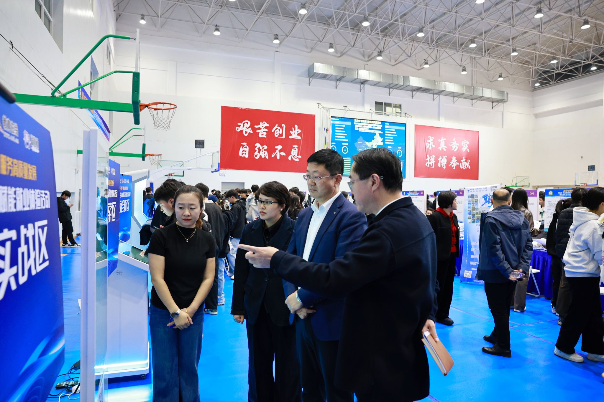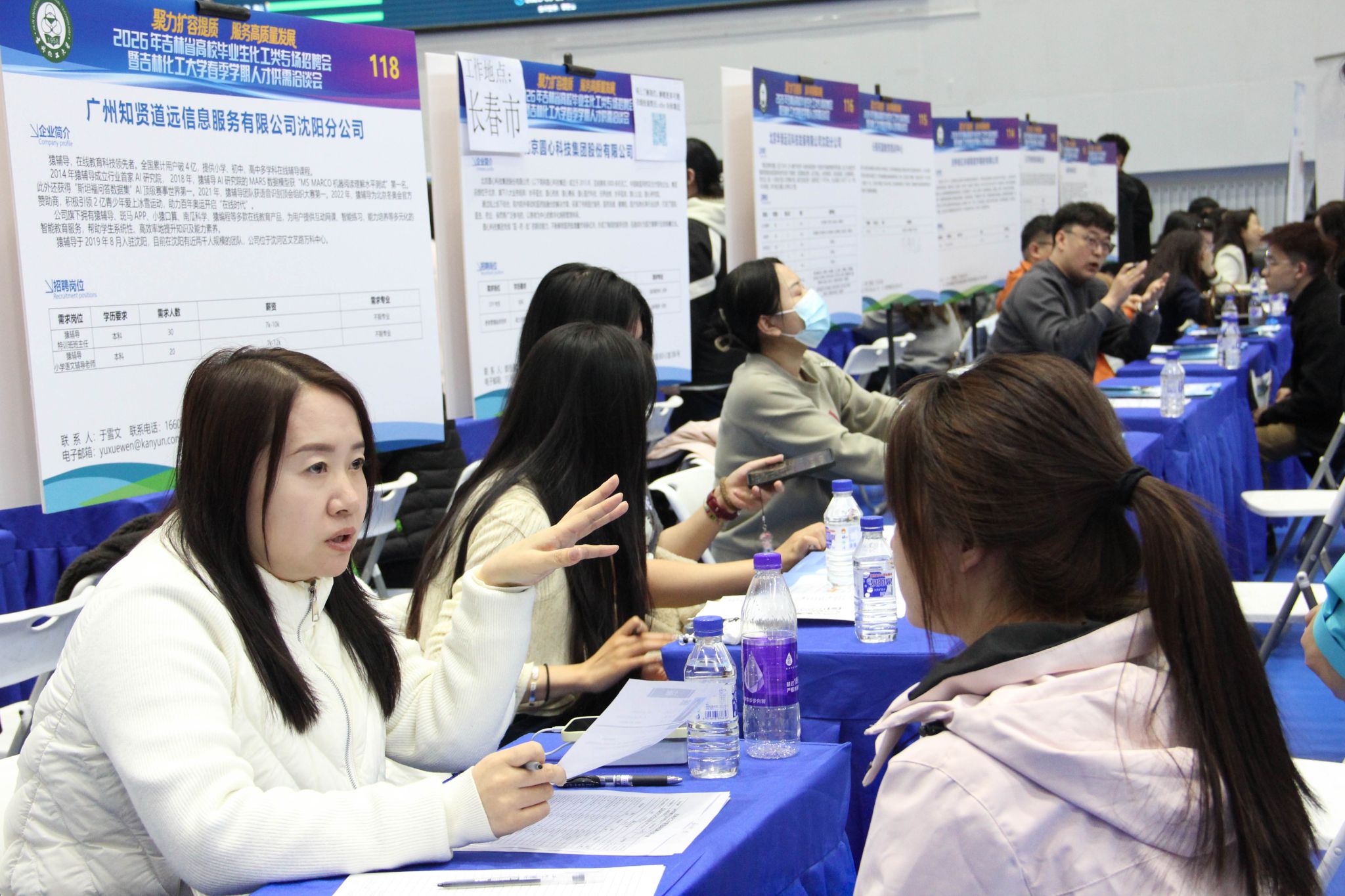 3月25日,吉林化工大学校园内春意盎然、人才荟萃,以“聚力扩容提质 服务高质量发展”为主题,2026年吉林省高校毕业生化工类专场招聘会暨吉林化工大学春季学期人才供需洽谈会在龙潭校区体育馆举行。学校党委常委、副校长孙大志出席活动,深入走访各企业展位,与用人单位代表广泛交流,详细了解企业人才需求及行业发展动态。